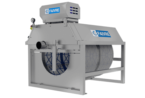 Le principe de fonctionnement est simple : le liquide à filtrer est déversé dans un tambour rotatif. Ce tambour est composé à sa périphérie de solides plaques recouvertes de toile Inox. Les impuretés plus grosses que les perforations sont piégées contre la face intérieure des plaques filtrantes. Le tambour tourne lentement (3 à 8 t/m, suivant modèle) et entraîne les impuretés hors de l’eau. Une rampe de rinçage située au sommet du tambour, nettoie alors les plaques pour évacuer les impuretés dans le canal de sortie des boues. Les filtres FAIVRE ont été conçus pour résister à toute corrosion, car ils sont entièrement construits en Inox et PEHD. Les filtres à tambour FAIVRE comportent peu de pièces en mouvement grâce à leur système exclusif de rotation et suspension du tambour par courroies (BDS System). La maintenance est très réduite. La force de ces filtres réside dans les plaques de filtration. Construites selon un procédé unique, elles se remplacent en quelques minutes grâce à un système de fixation exclusif. Nous vous proposons donc une gamme complète de filtres performants, robustes et économiques à l’utilisation.