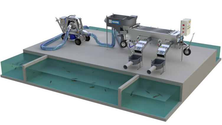 - Counters and a fish pump adapted to the size and speed of the grader,