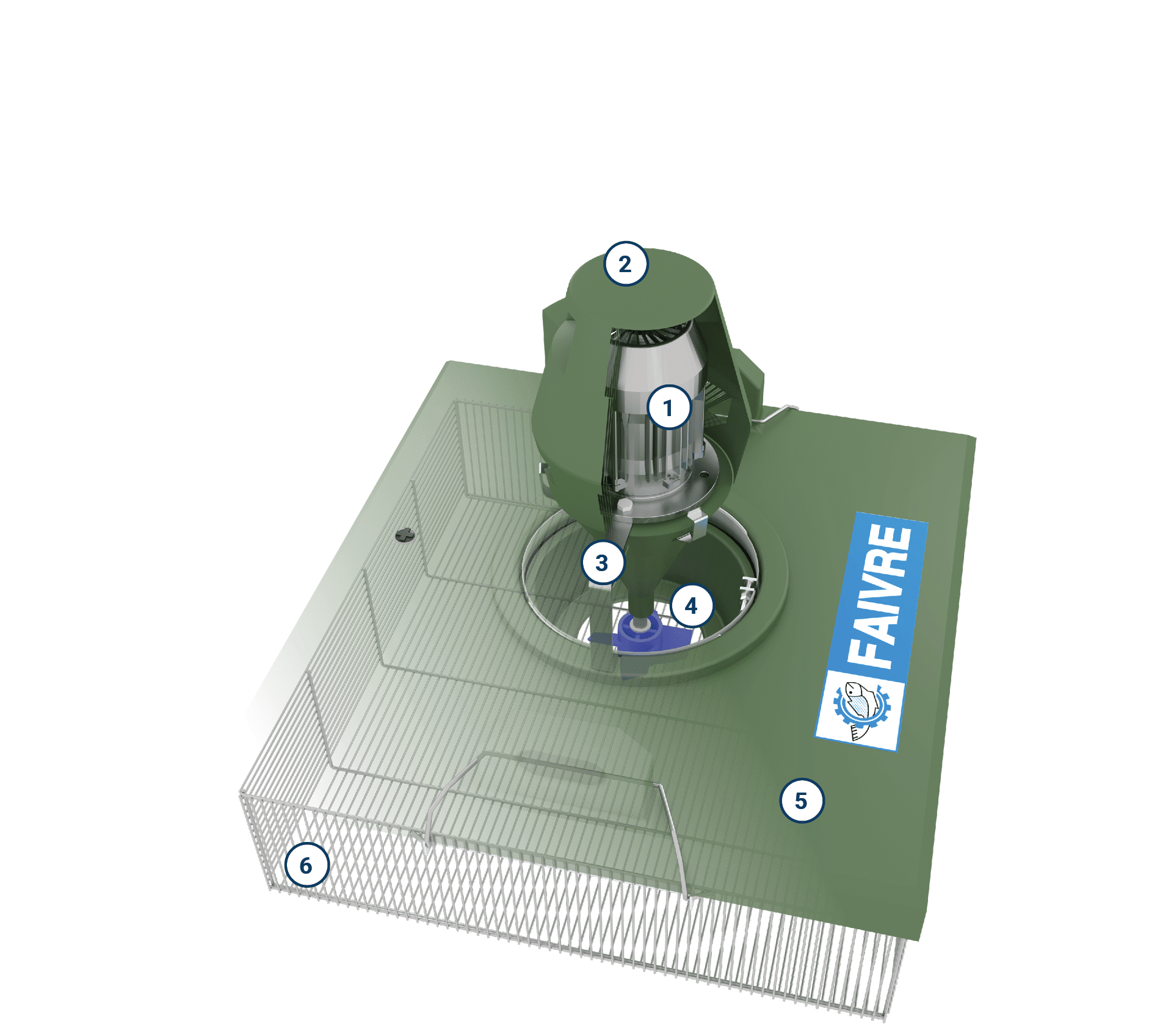 Vous pouvez choisir d’équiper votre aérateur FLOBULL d’une grille 5mm si vous souhaitez utiliser ce dernier dans un bassin contenant de petits poissons, comme dans les bassins d’alevinage par exemple.