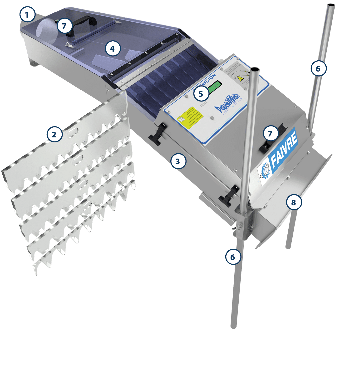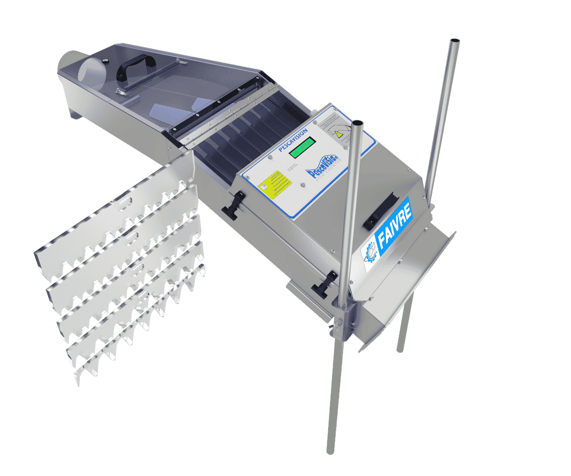 Le compteur Pescavision 10 est destiné au comptage des petits poissons de 5g à 150g (salmonidés). Il est conçu pour être placé en sortie d’un trieur comme l’Hélios 10.