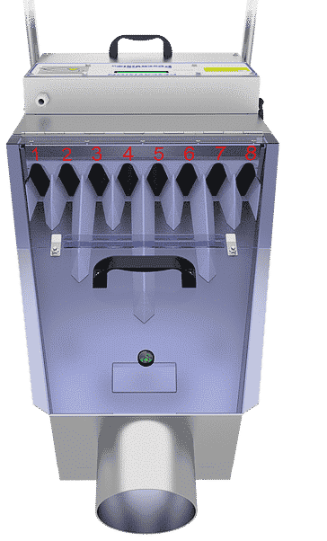 Le boîtier centralisateur ainsi que les bacs de réception peuvent être fixés sur le trolley afin d’en faire une station de comptage complète et autonome.