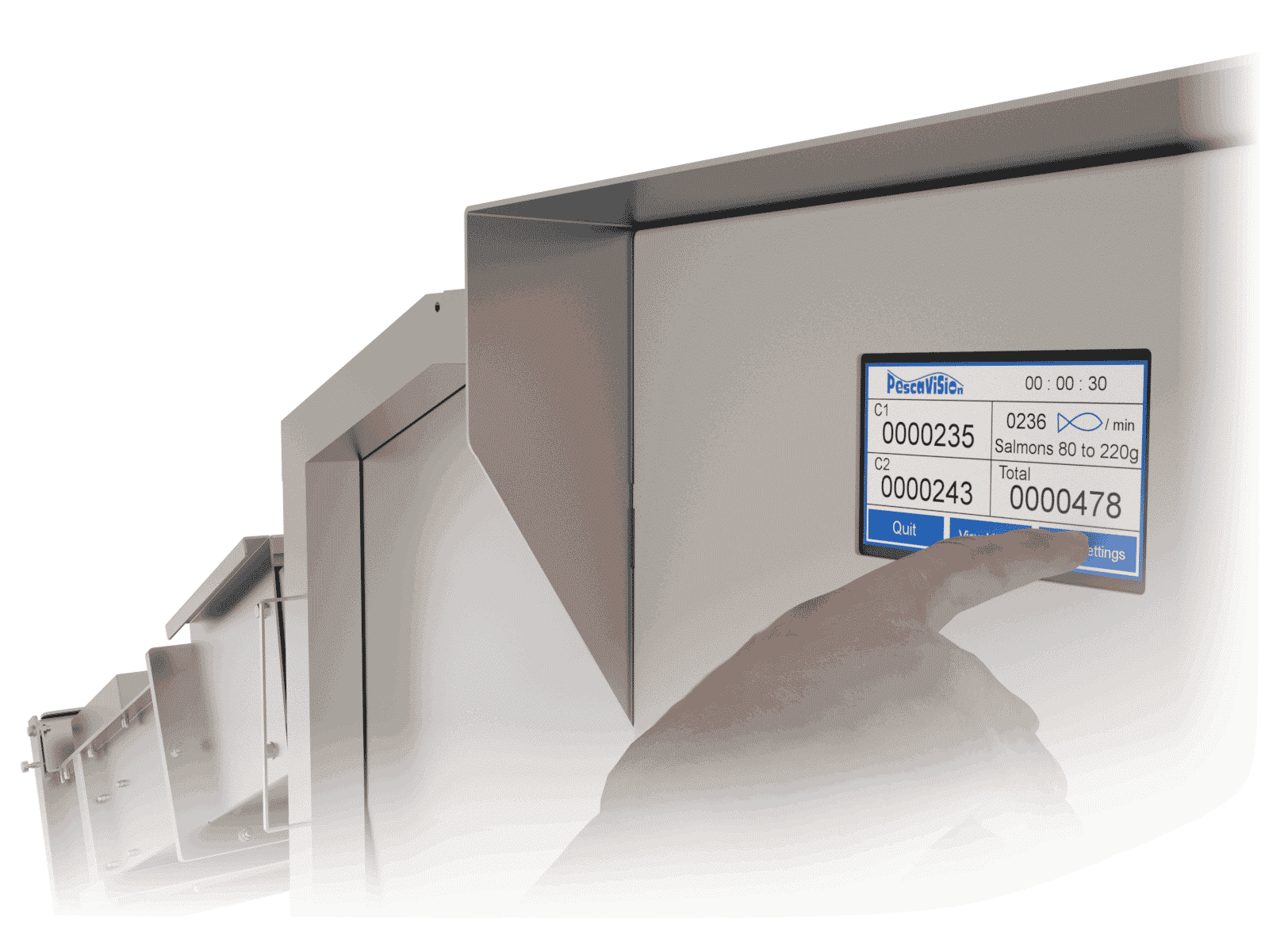 Le compteur Pescavision 300 est destiné au comptage à haute vitesse durant le transfert de poissons allant de de 30g à 1kg. Le Pescavision 300 est capable de compter 9 tonnes de poissons de 300g par heure.