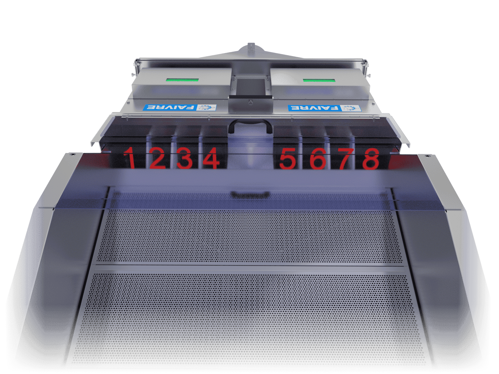 Le design de l’entrée du compteur à été conçu pour une répartition égale des poissons dans chacun des 8 canaux.