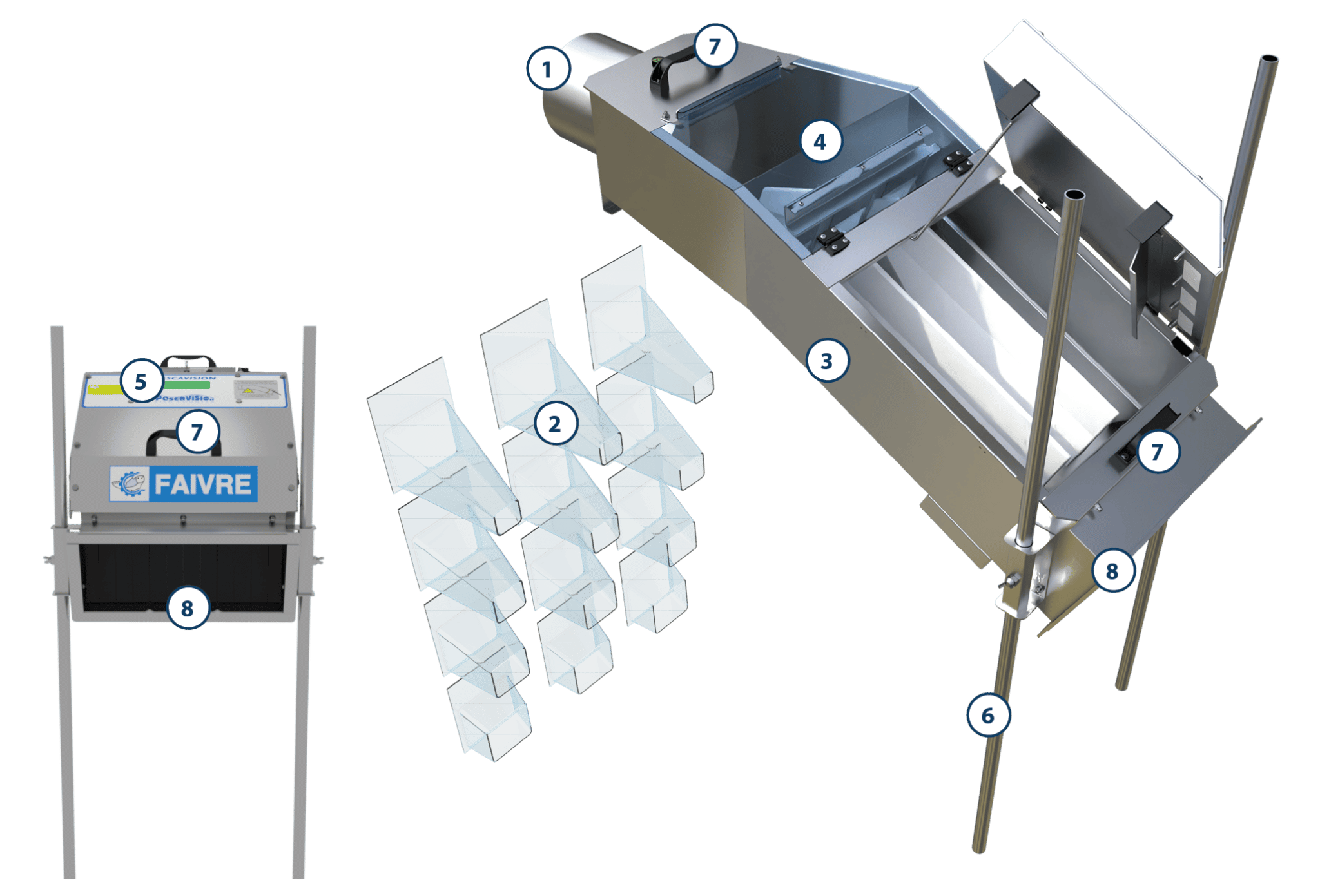 Le réglage en hauteur des séparateurs permet une séparation des poissons plus fine afin de garder une précision de comptage de 98% à 100%.
