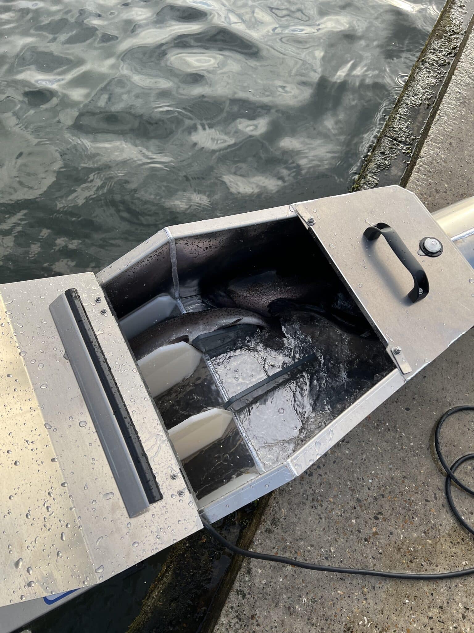 Le design de l’entrée du compteur a été conçu pour une répartition égale dans chacun des 3 canaux. Ce nouveau modèle de compteur possède des canaux en V, ce qui lui permet d’avoir une meilleure séparation des poissons dans les canaux de comptage.