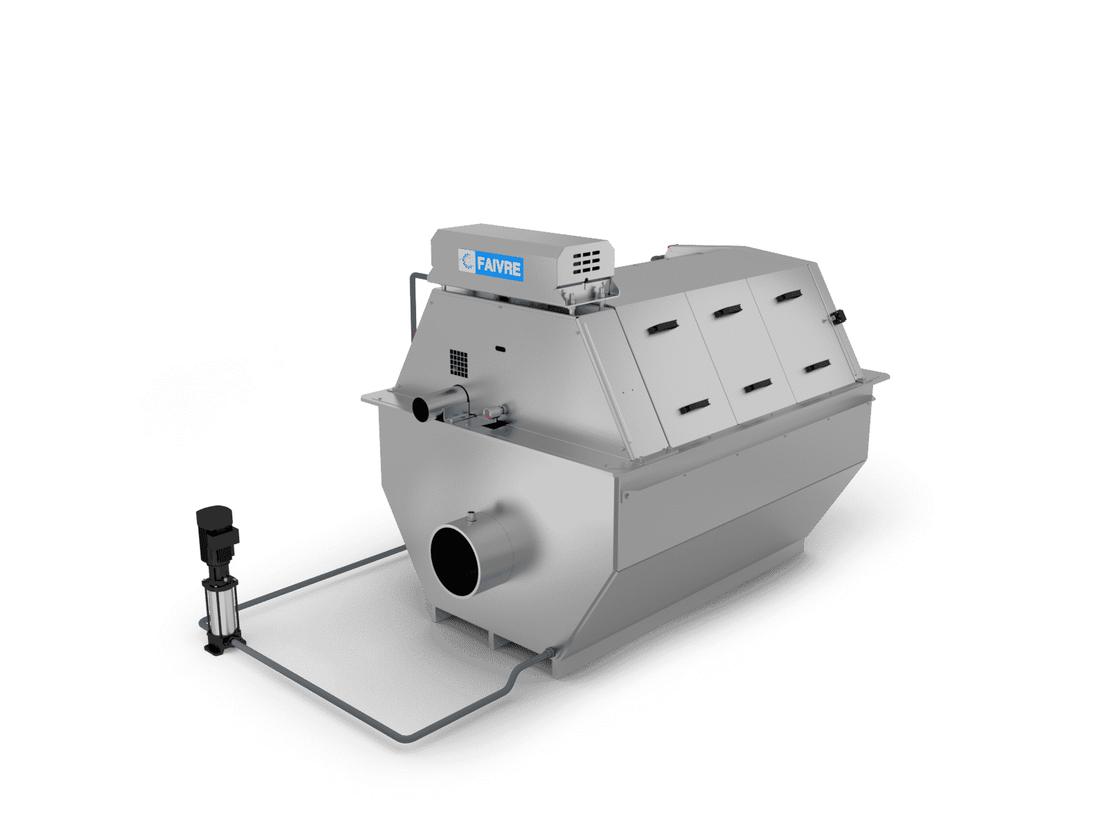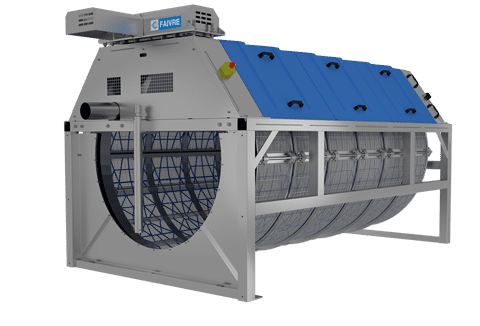 Le principe de fonctionnement est simple : le liquide à filtrer est déversé dans un tambour rotatif. Ce tambour est composé à sa périphérie de solides plaques recouvertes de toile Inox. Les impuretés plus grosses que les perforations sont piégées contre la face intérieure des plaques filtrantes. Le tambour tourne lentement (3 à 8 t/m, suivant modèle) et entraîne les impuretés hors de l’eau. Une rampe de rinçage située au sommet du tambour, nettoie alors les plaques pour évacuer les impuretés dans le canal de sortie des boues. Les filtres FAIVRE ont été conçus pour résister à toute corrosion, car ils sont entièrement construits en Inox et PEHD. Les filtres à tambour FAIVRE comportent peu de pièces en mouvement grâce à leur système exclusif de rotation et suspension du tambour par courroies (BDS System). La maintenance est très réduite. La force de ces filtres réside dans les plaques de filtration. Construites selon un procédé unique, elles se remplacent en quelques minutes grâce à un système de fixation exclusif. Nous vous proposons donc une gamme complète de filtres performants, robustes et économiques à l’utilisation.
