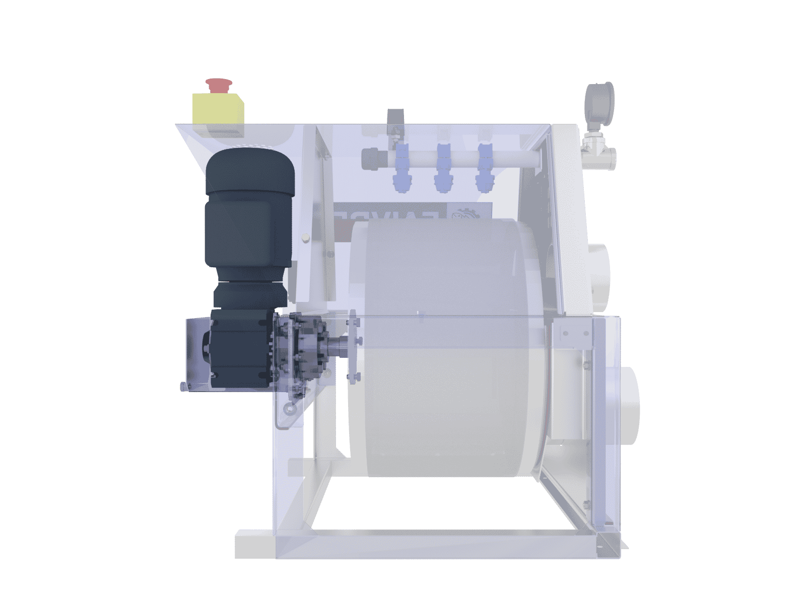 – 10m câble avec connecteur M23 pour connecter facilement le moteur du tambour, la pompe de rinçage, l’arrêt d’urgence et le contacteur de sécurité capots.