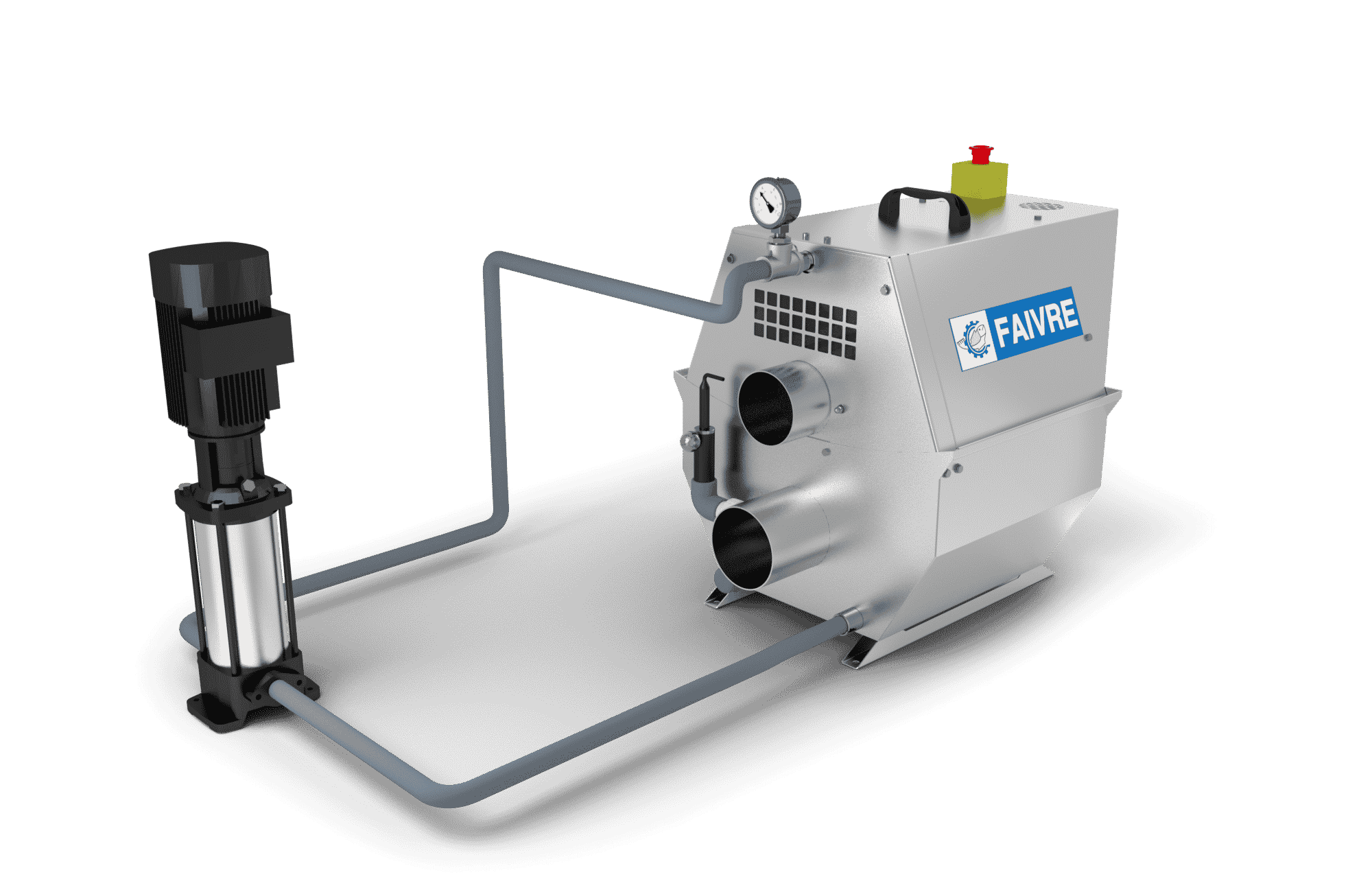 Pompe verticale utilisée pour le nettoyage des mailles filtrantes. Cette pompe est relié à la rampe de dé-colmatage du filtre.