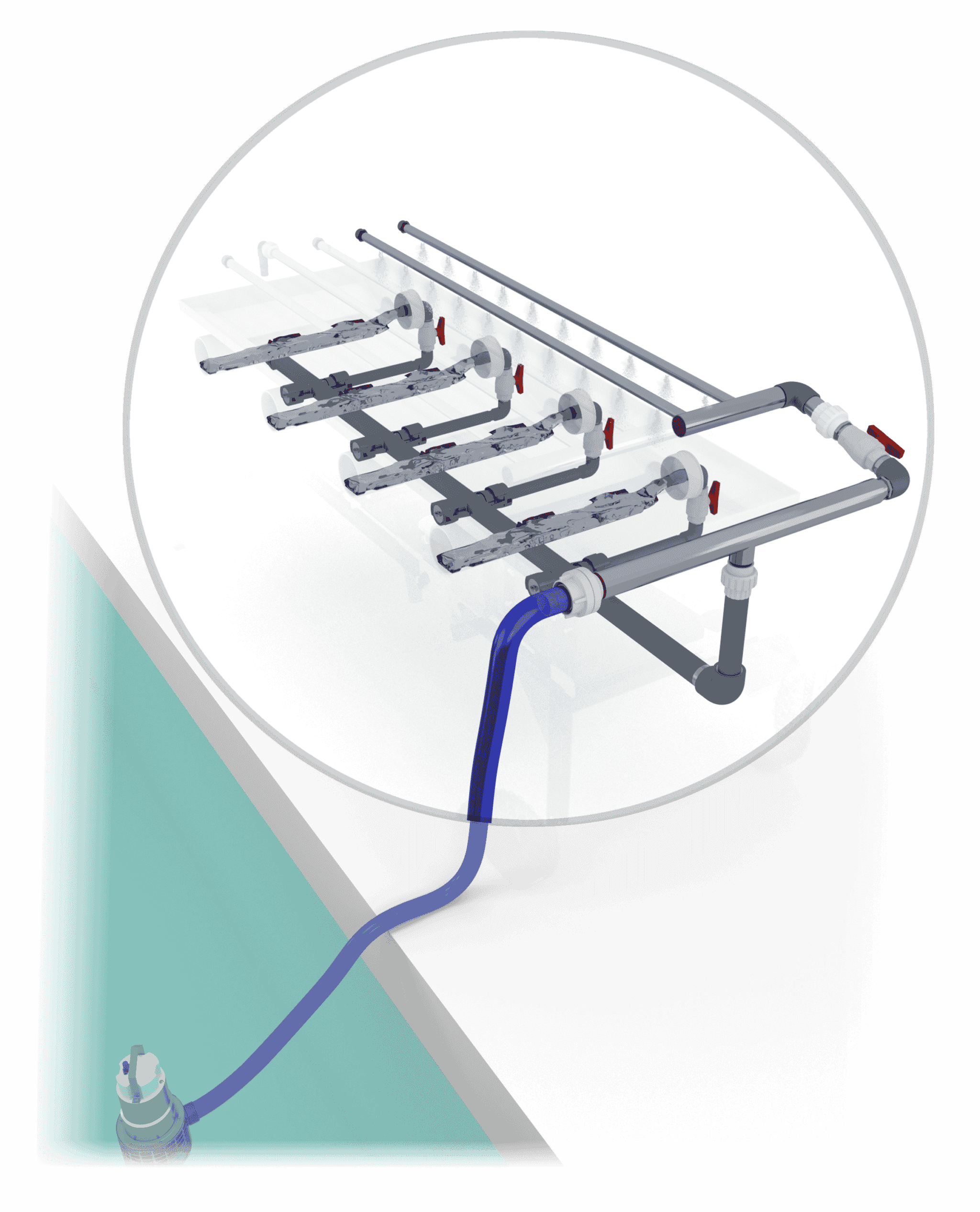 Une pompe à eau adaptée doit être connectée au trieur afin de trier les poissons sans dommage et avec un confort optimal.