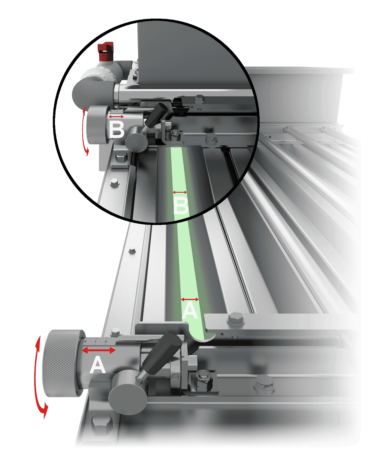 La roue jocket et les pieds coulissants situés à l’avant et à l’arrière de la machine, vous permettent de régler précisément l’inclinaison du plan de calibrage afin d’affiner la précision de votre tri.